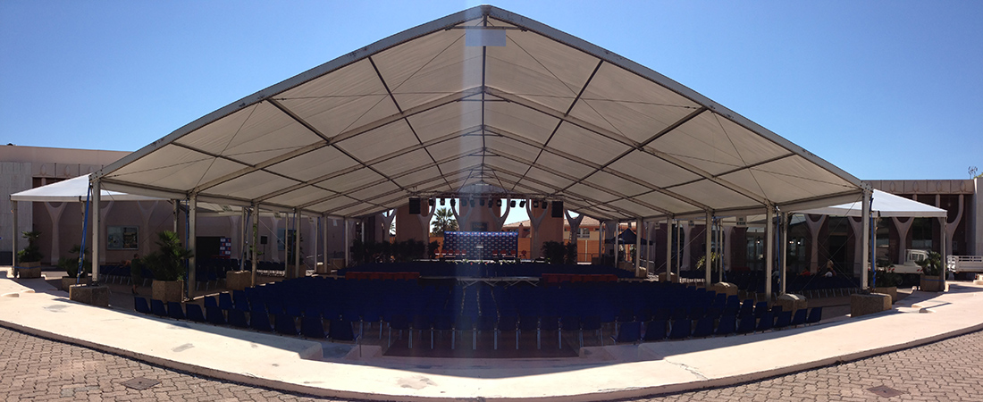 Un espace plein air de 700m², qui peut être utilisé en complément des espaces couverts et qui permet une implantation de tentes ou chapiteaux (500m²).