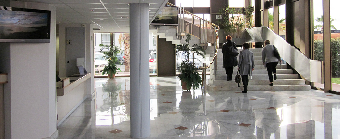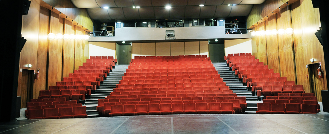 Salle de 348 placesHall d’accueil de 80m² en lumière du jour, équipé de deux écrans plasma, d’un espace vestiaire et d’un espace billetterie