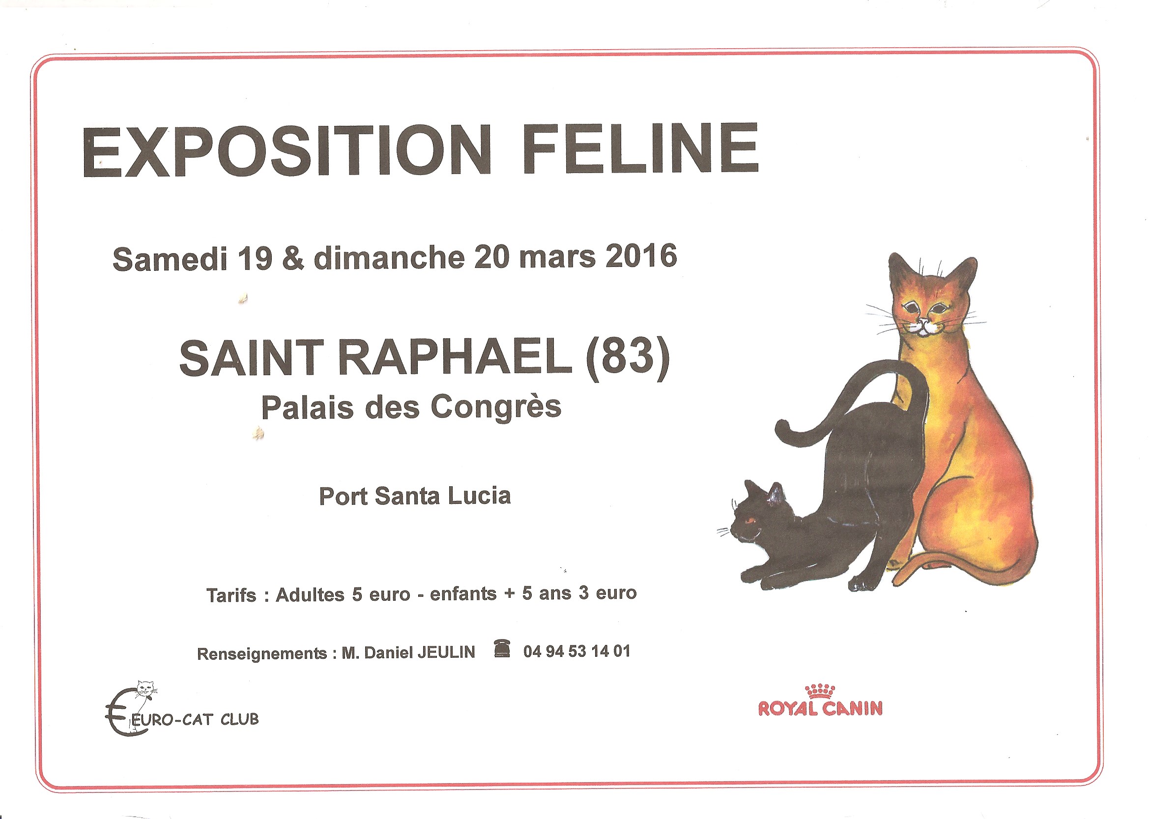 Depuis 2008, l’Association EURO-CAT organise une exposition Féline au Palais des Congrès de Saint-Raphaël.