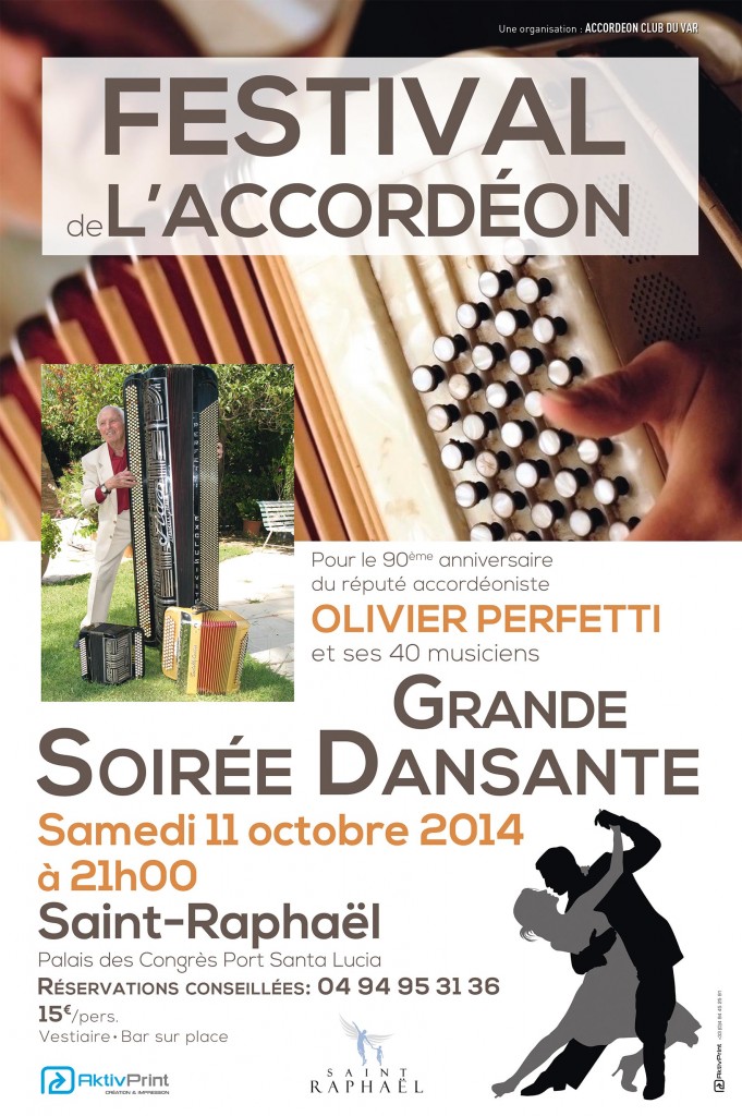 A 21h00: Grande soirée dansante avec Olivier PERFETTI et ses 40 musiciens: ses anciens élèves de l’Accordéon Club du Var et les professionnels du club de Lorraine.