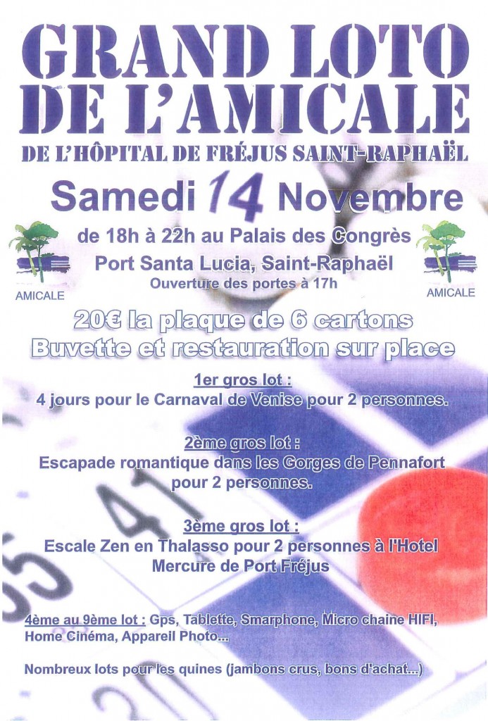 14nov18:0022:00GRAND LOTO DE L'AMICALE DE L'HOPITAL DE FREJUS/SAINT-RAPHAEL
