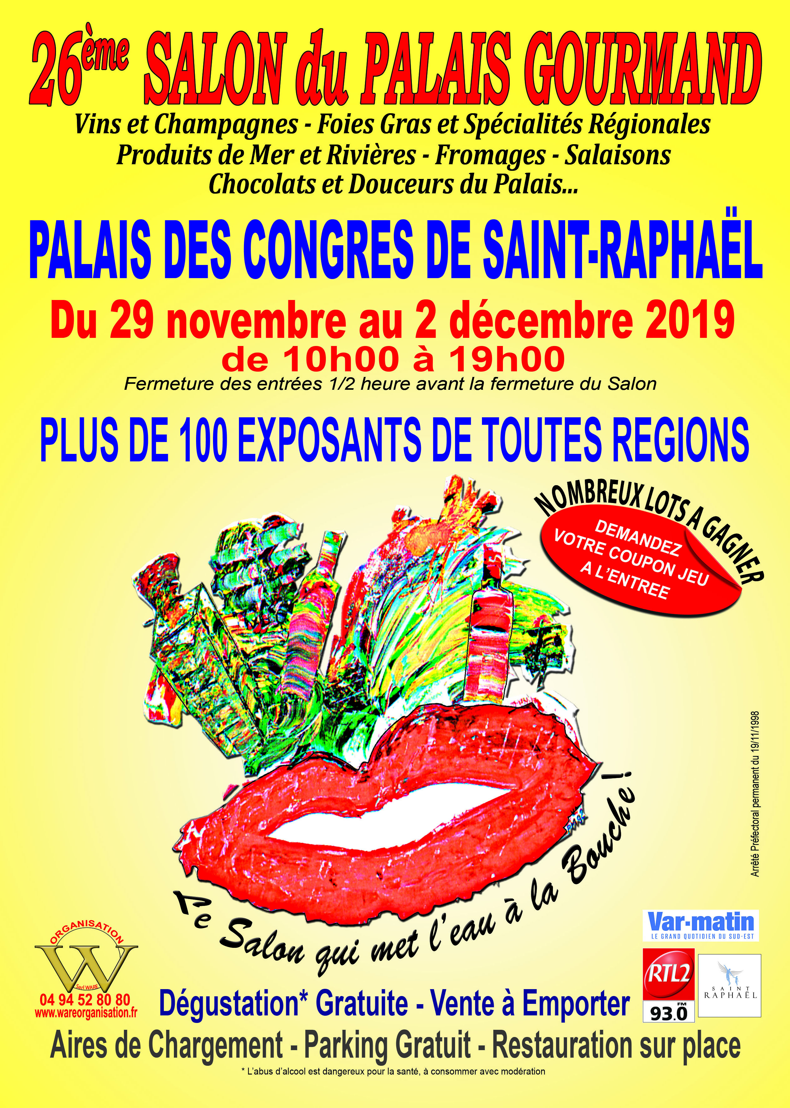 La 26ème Edition du Salon du Palais Gourmand de Saint-Raphaël ouvrira ses portes du 29 novembre au 2 décembre 2019.